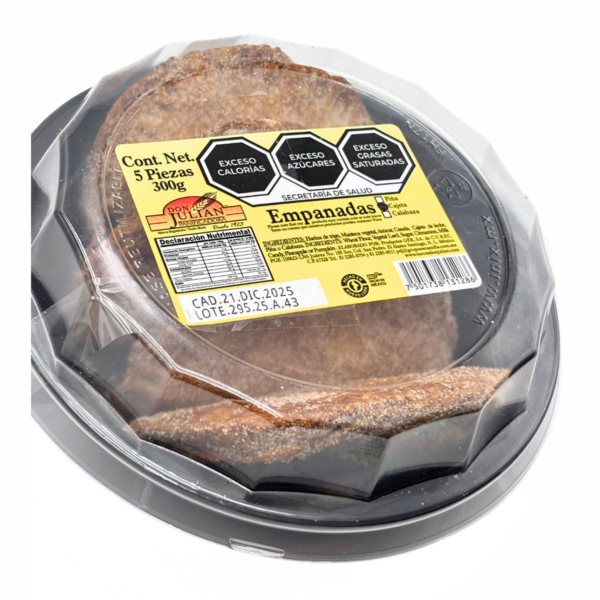 Harina de trigo, Manteca vegetal, Azucar, Cajeta de leche, piña o calabaza